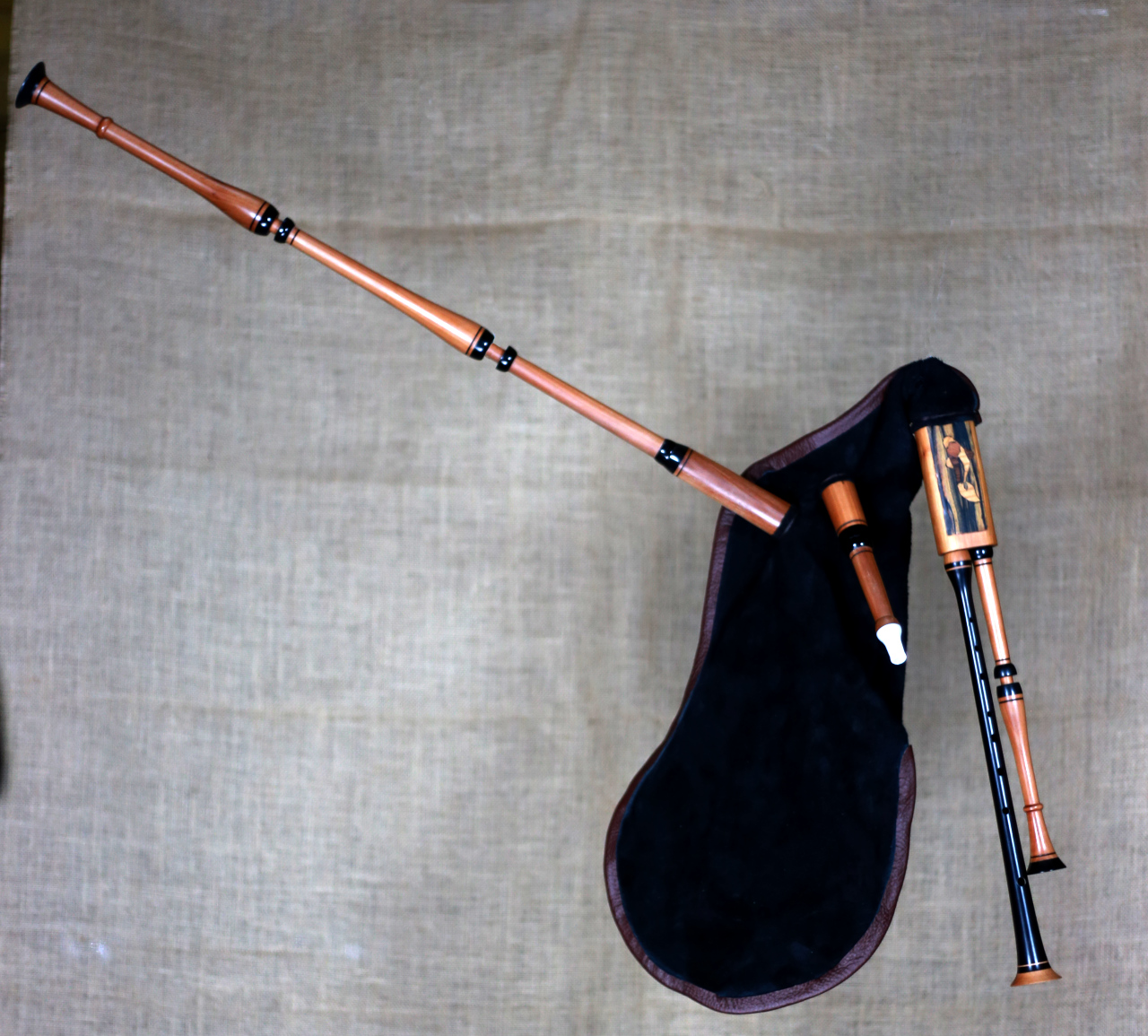 Cornemuse du centre 14" (La), Corps en cormier, bagues Buis. Hautbois palissandre